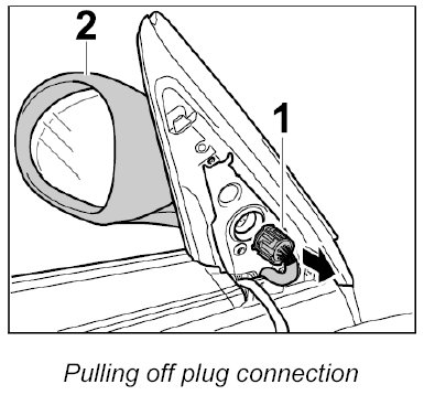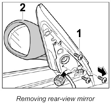 1. Pull plug connection -1- off the rear-view mirror -2- (-arrow-).