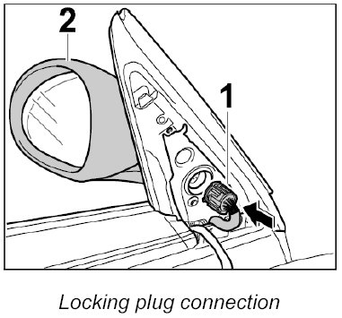 1. Insert plug connection -1- into the rear-view mirror -2- (-arrow-).