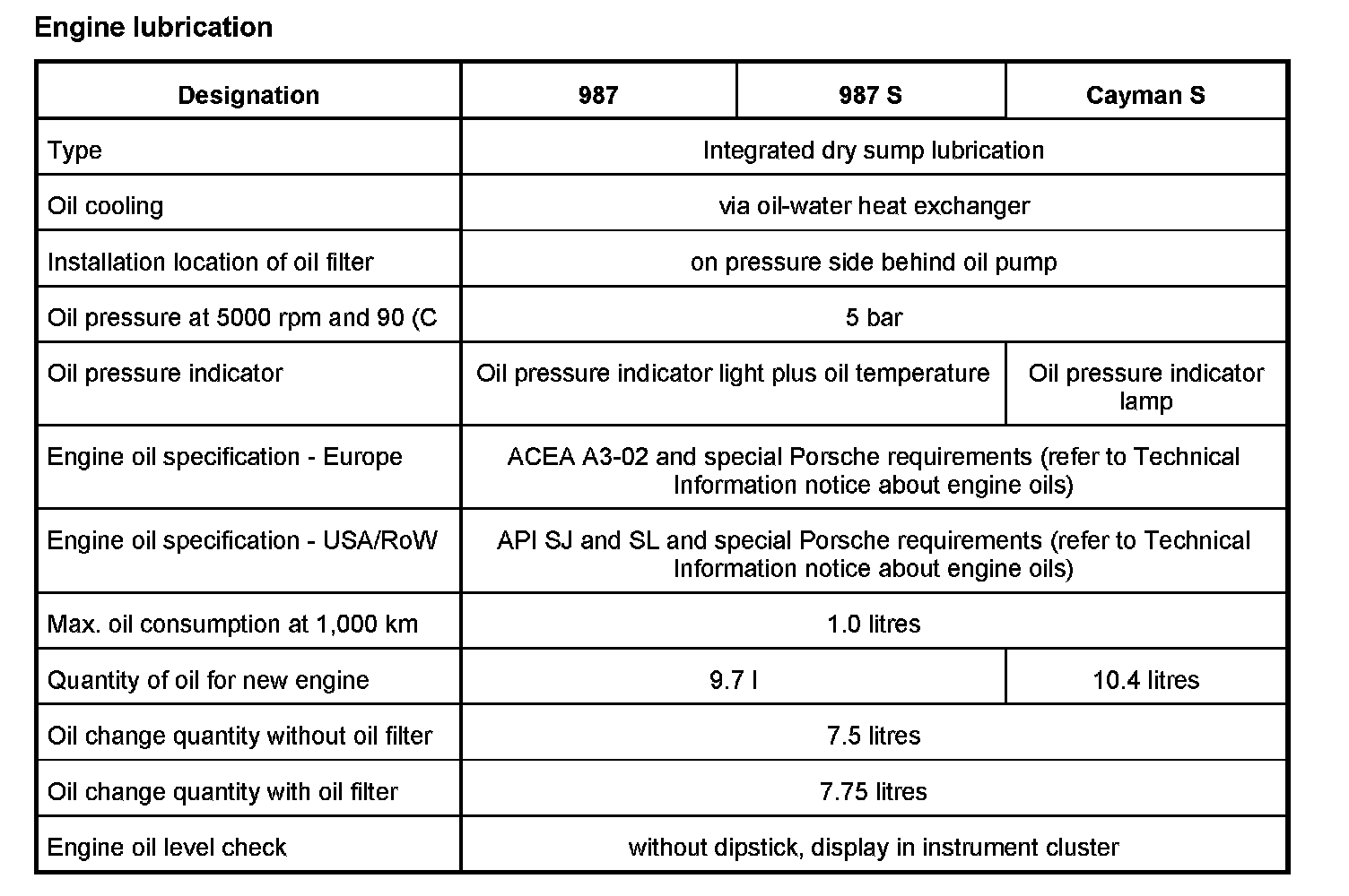 Engine Lubrication: Specifications