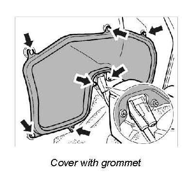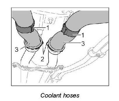 22. Tiptronic: Disconnect coolant hoses from oil-water heat exchanger (transmission), loosen spring band clamps and pull off hoses.