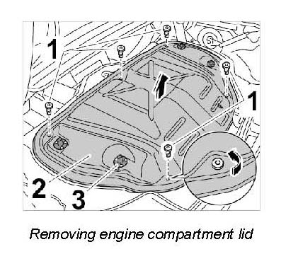 5. Remove engine compartment lid.