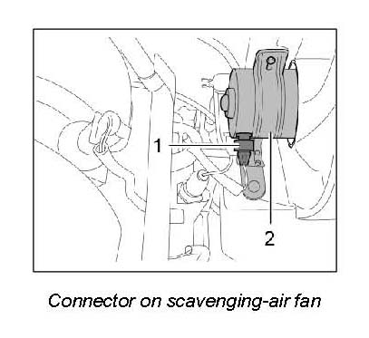 5. Release and pull off connector -1- on scavenging-air fan -2-.