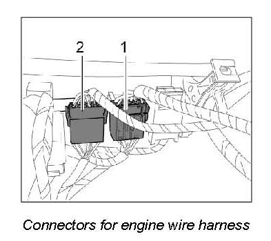 11. Mark the position of the connectors at the engine control module so that it will be easier to arrange them during installation.