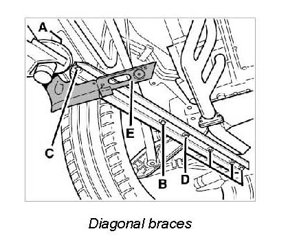 ^ Take care to maintain access to the screws for the diagonal struts in the vicinity of the rear jacking points.
