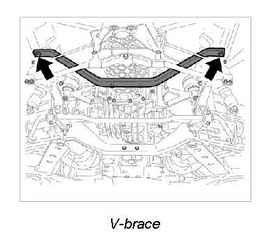 25. Unscrew screws (M10 x 70) -arrows- and remove V-brace.