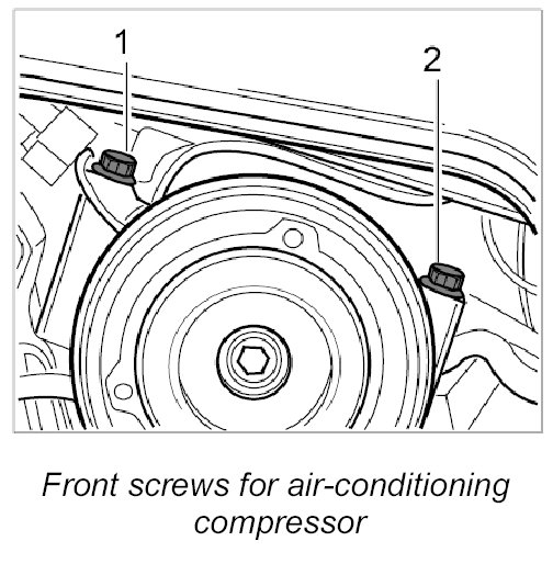5.2. Screw in front Torx screws for air-conditioning compressor (M8 x 90) -1- and -2-.