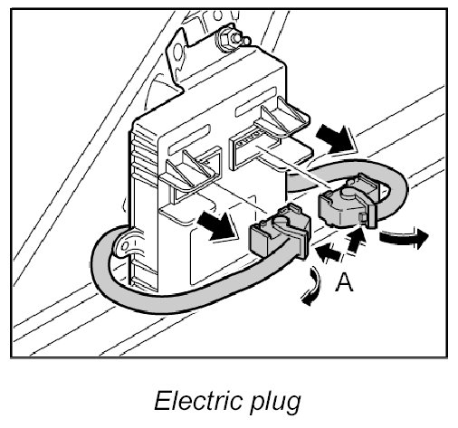 3. Release and unplug both electric connectors -A- and disengage the left and right electric lines on the control unit.