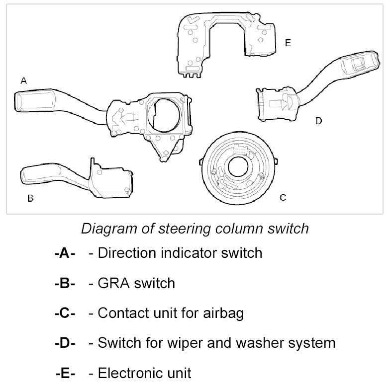 3. Turn the steering column switch round and remove the electronic unit -E-.