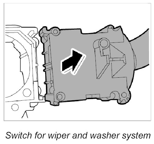 5. Pull switch for wiper and washer system -D- up and out of the mount.