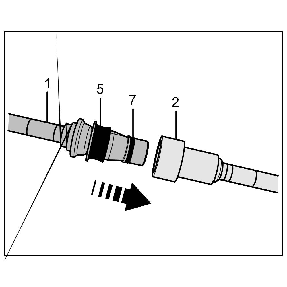 If the plug-in coupling is locked correctly, you should be able to feel slight axial play between the connector -1- and plug-in sleeve -2-. A plug-in coupling cannot be partly locked.