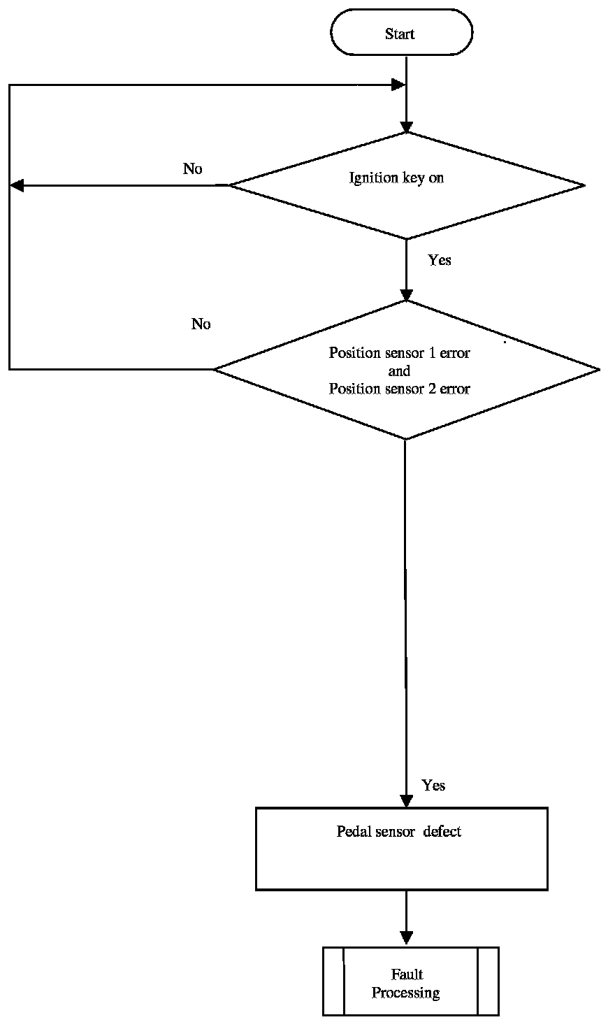 The aim is to detect a multiple pedal value sensor fault. In case of multiple pedal value sensor fault the engine management state is set to idle state. Only creeping is possible.