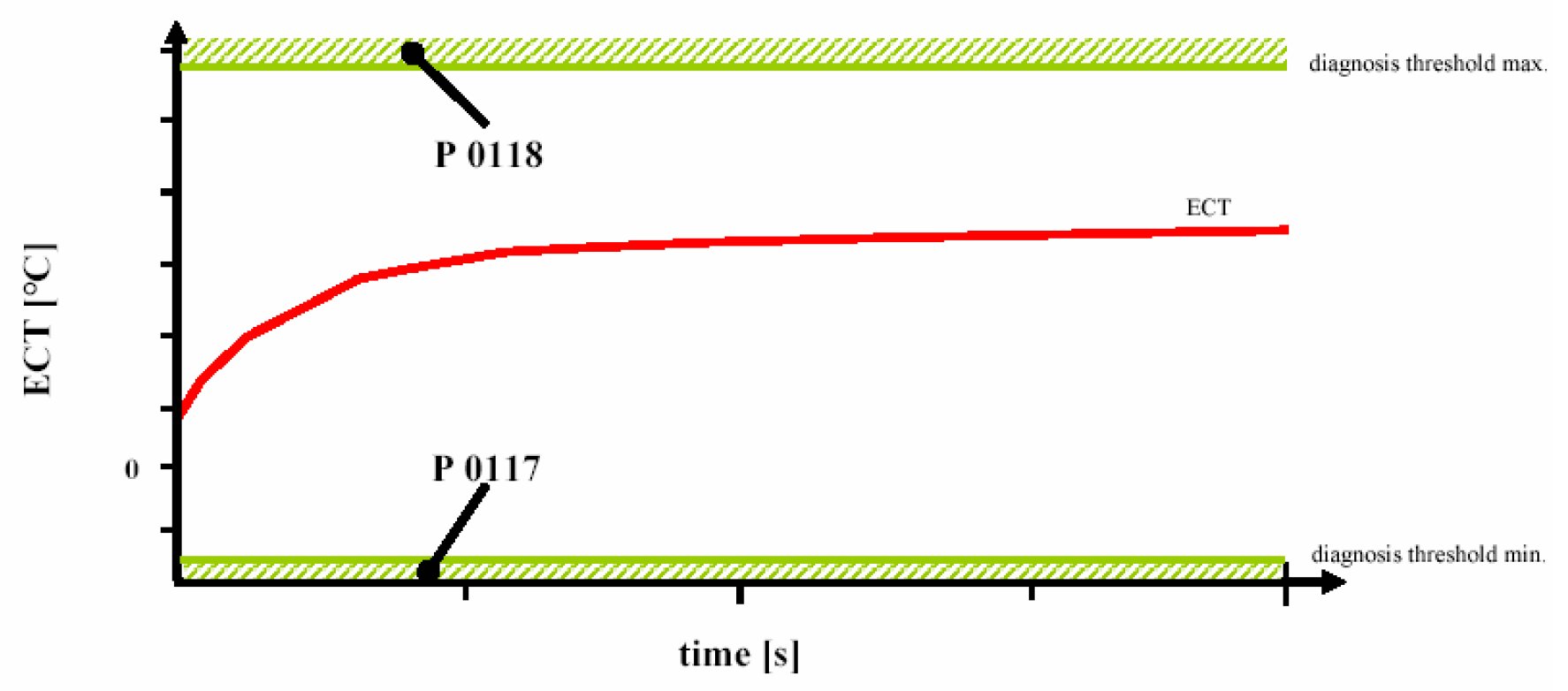 Diagnosis threshold min. < engine coolant temperature < Diagnosis threshold max.