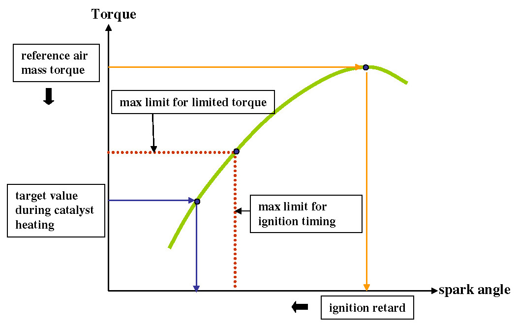 The spark retard is limited (fixed) during the catalyst heating phase. There is no diagnosis implemented.