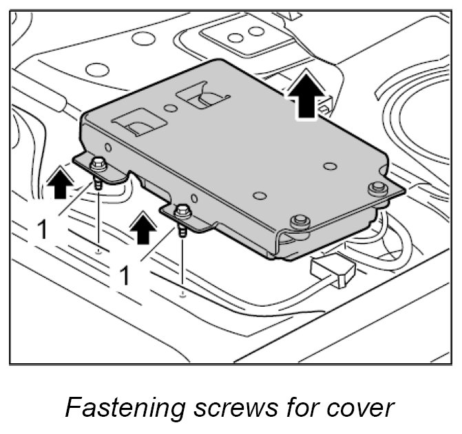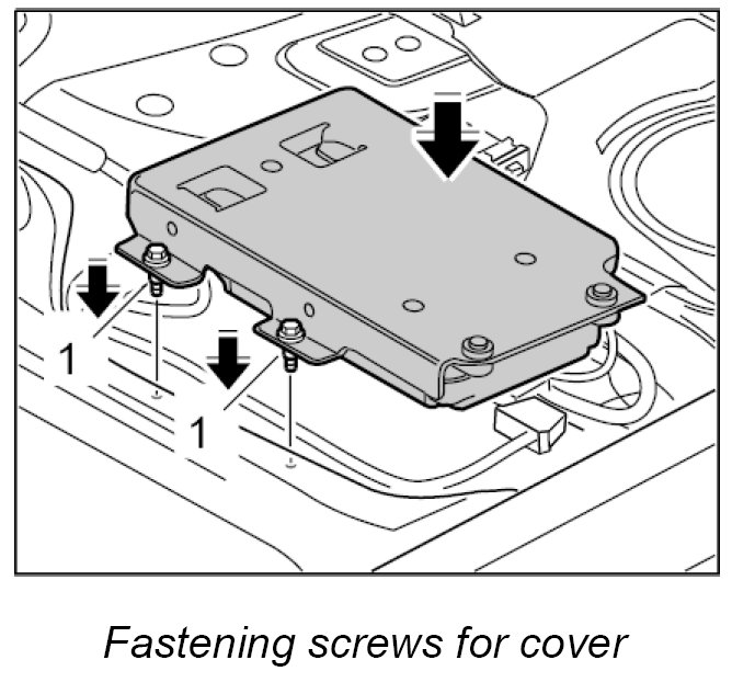 4. Turn over the cover and telephone control unit, position it on the floor of the vehicle and screw down with fastening screws -1-. Tightening torque: 5 Nm (3.5 ftlb.)