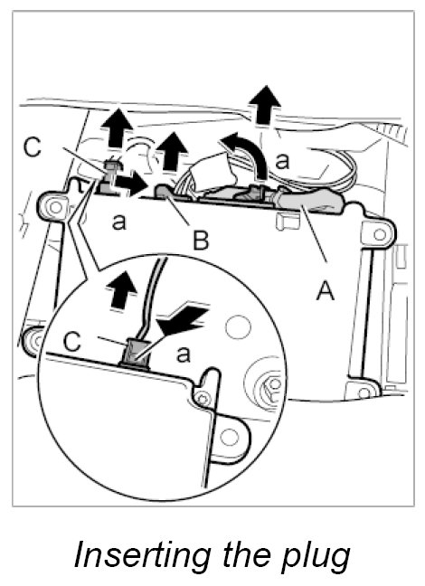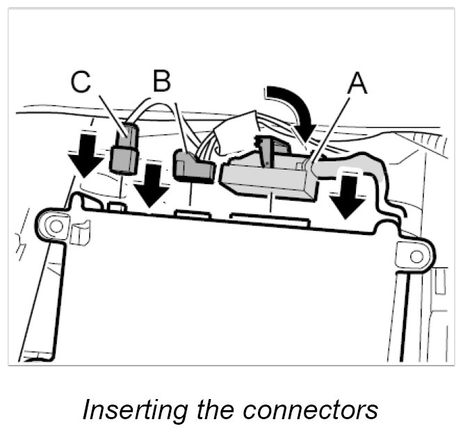 2. Push in electrical plug connections -C, B - until plugs are felt to engage.