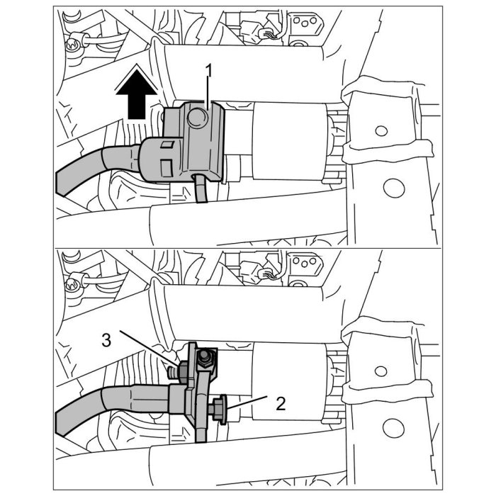 2.1. Connect terminal 30 line and secure it with the fastening nut -3-. => Tightening torque: 18 Nm (13 ftlb.)