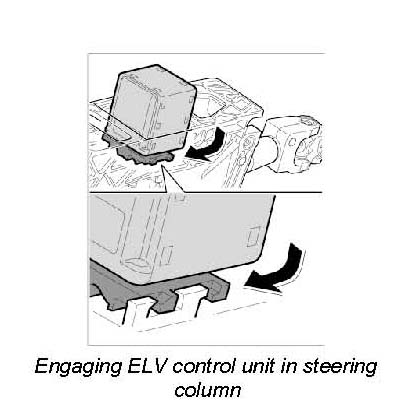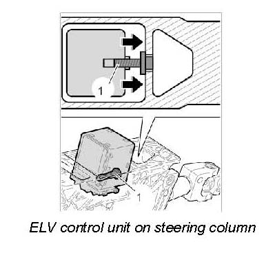 2. Slide the ELV control unit back, disengage it from the steering column and remove it by moving it upwards.