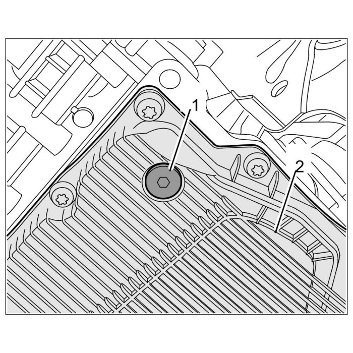Fit the ATF pan -1- on the transmission. Screw in and tighten M6 screws.