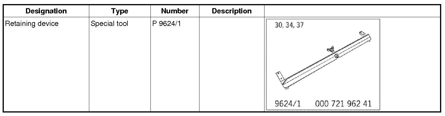 2. Retaining device P 9624/1 must then be removed from cross member.