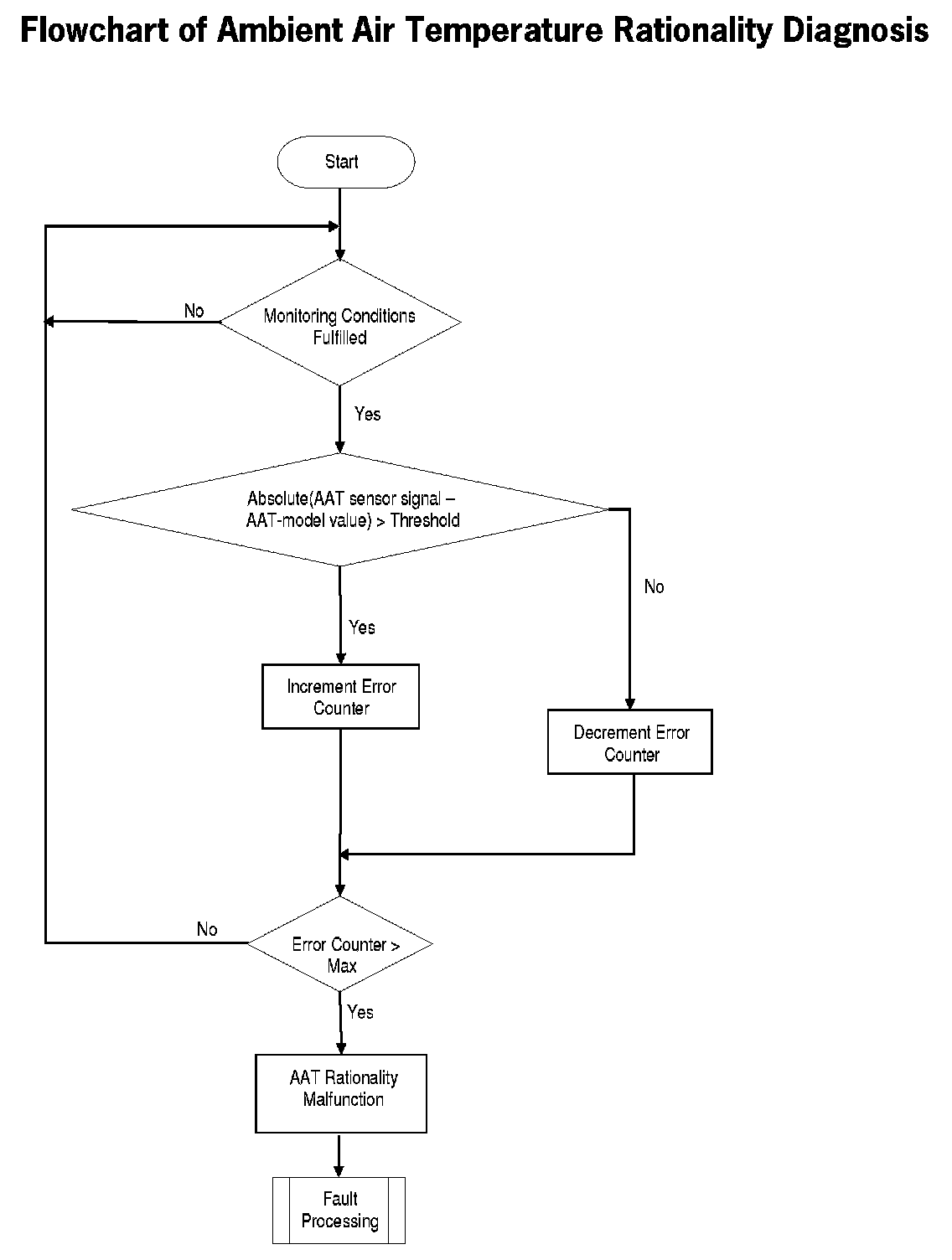 The diagnosis basically involves the comparison of the AAT sensor-signal to a model-AAT value which is calculated based on IAT-signal and other factors like MAF, engine-speed and vehicle speed. If the conditions for learning the AAT-model are fulfilled, then the difference between measured value and model value is monitored. If this difference exceeds a calibrate able threshold, an error is set.
