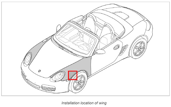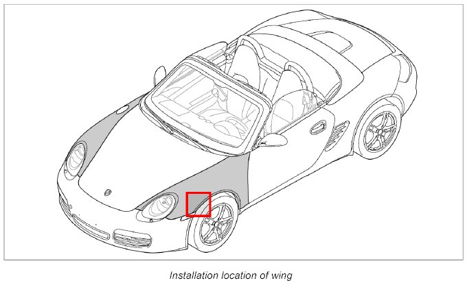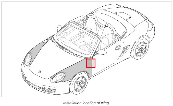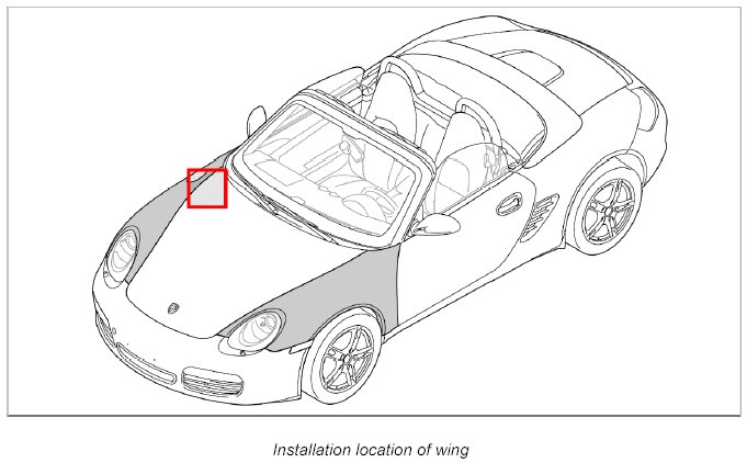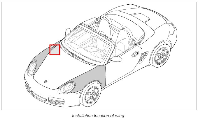 3. Position wing -19- on the body -C- and slide towards A-pillar -D-. Screw in fastening screws -18- into the A-pillar and tighten lightly.