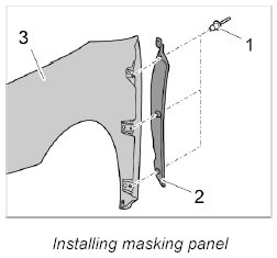 1. Press out pin from plastic expansion rivet -1- and remove masking panel -2- from wing -3-.