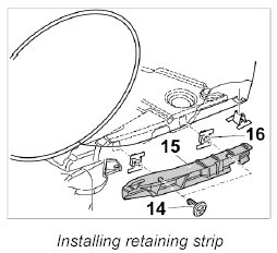 1. Clip fastening nuts -16- into place. Fix retaining strip -15- on the wing up against the stop and tighten with the fastening nuts -14-. Tightening torque: 2.0 ftlb.