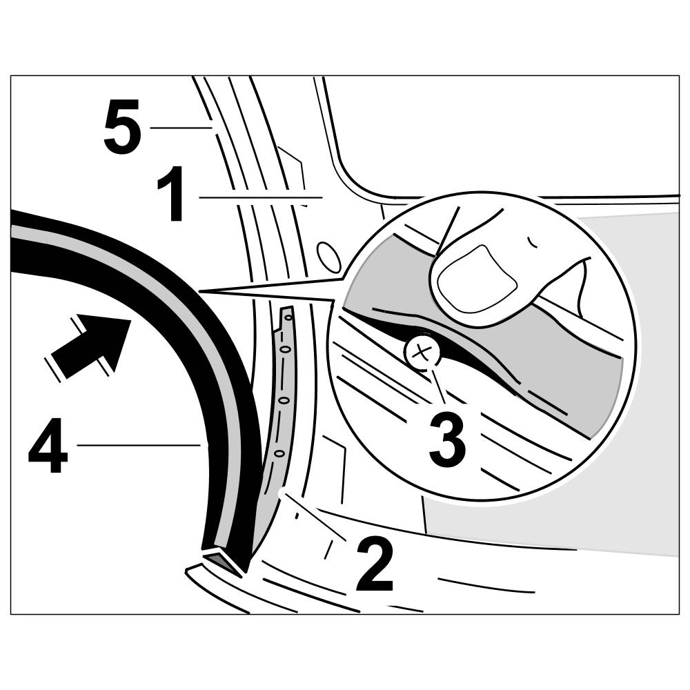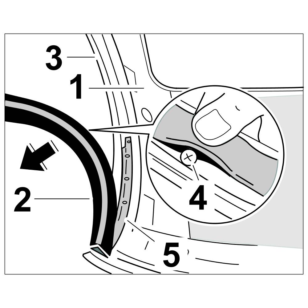 12.2. Press upper seal -4- into the profile of the retaining strip -5-.
