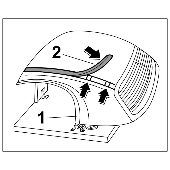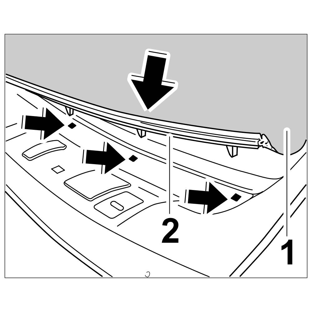 8.1. Position front retaining strip -2- of roof liner -1- and clip it in.