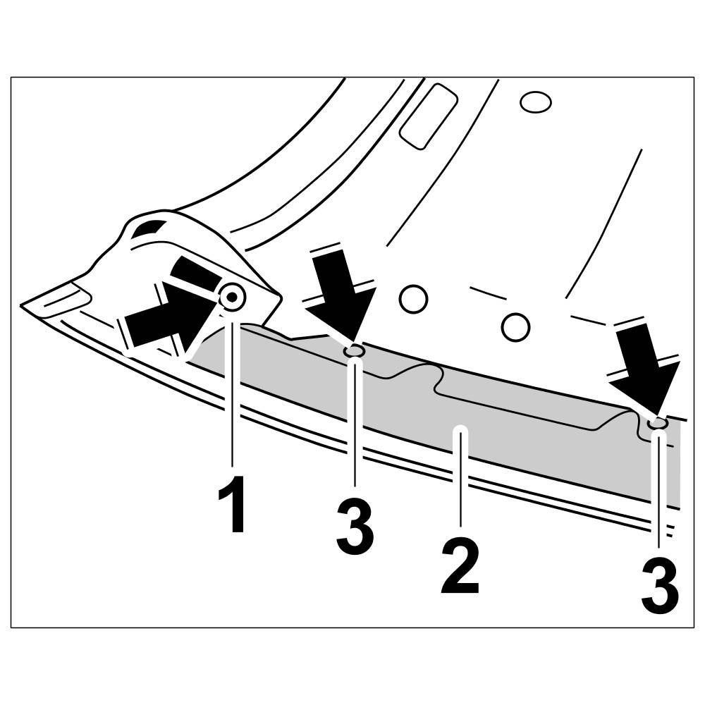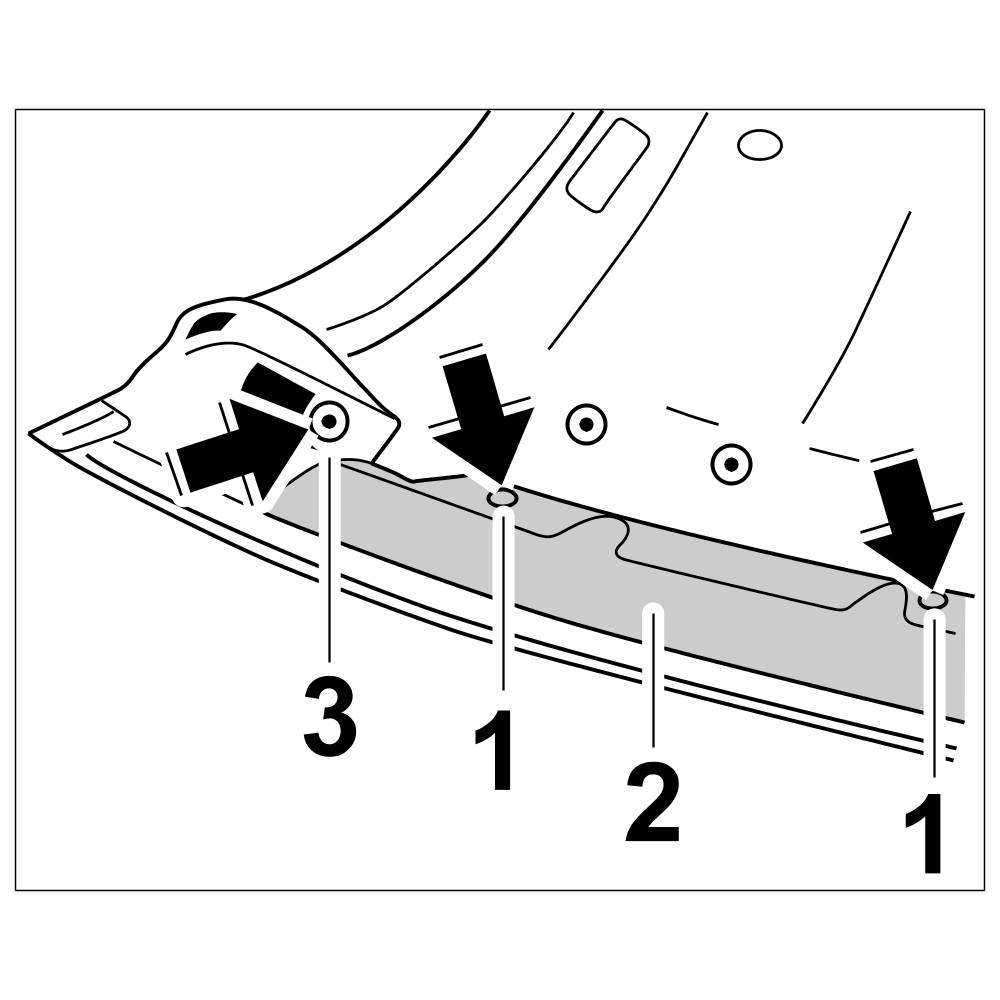 12.1. The seal at the sides of the roof frame -1- is in two parts. Position lower seal with retaining strip -2- on roof frame -1- and fasten with fastening screws -3-.