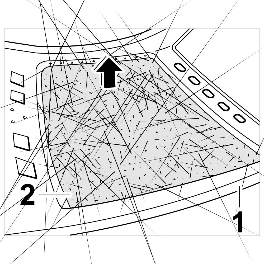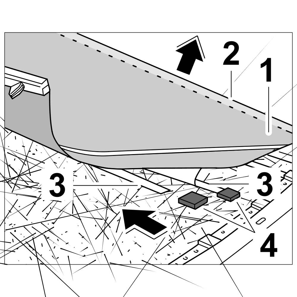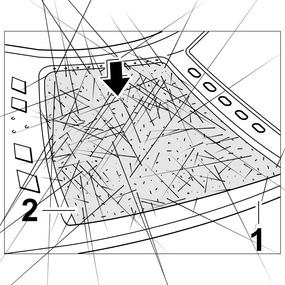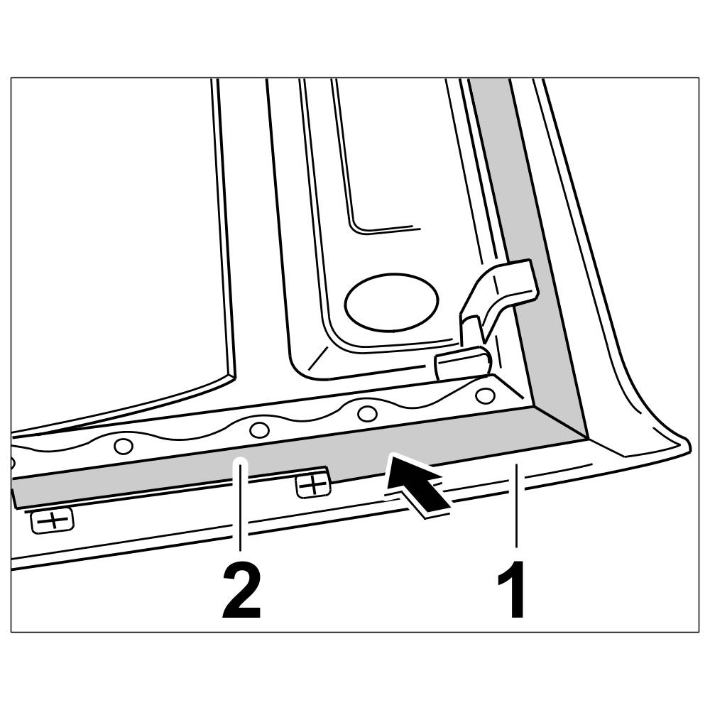 4.1. Position the self-adhesive sound absorber -2- in the hardtop body -1- and press firmly into place.