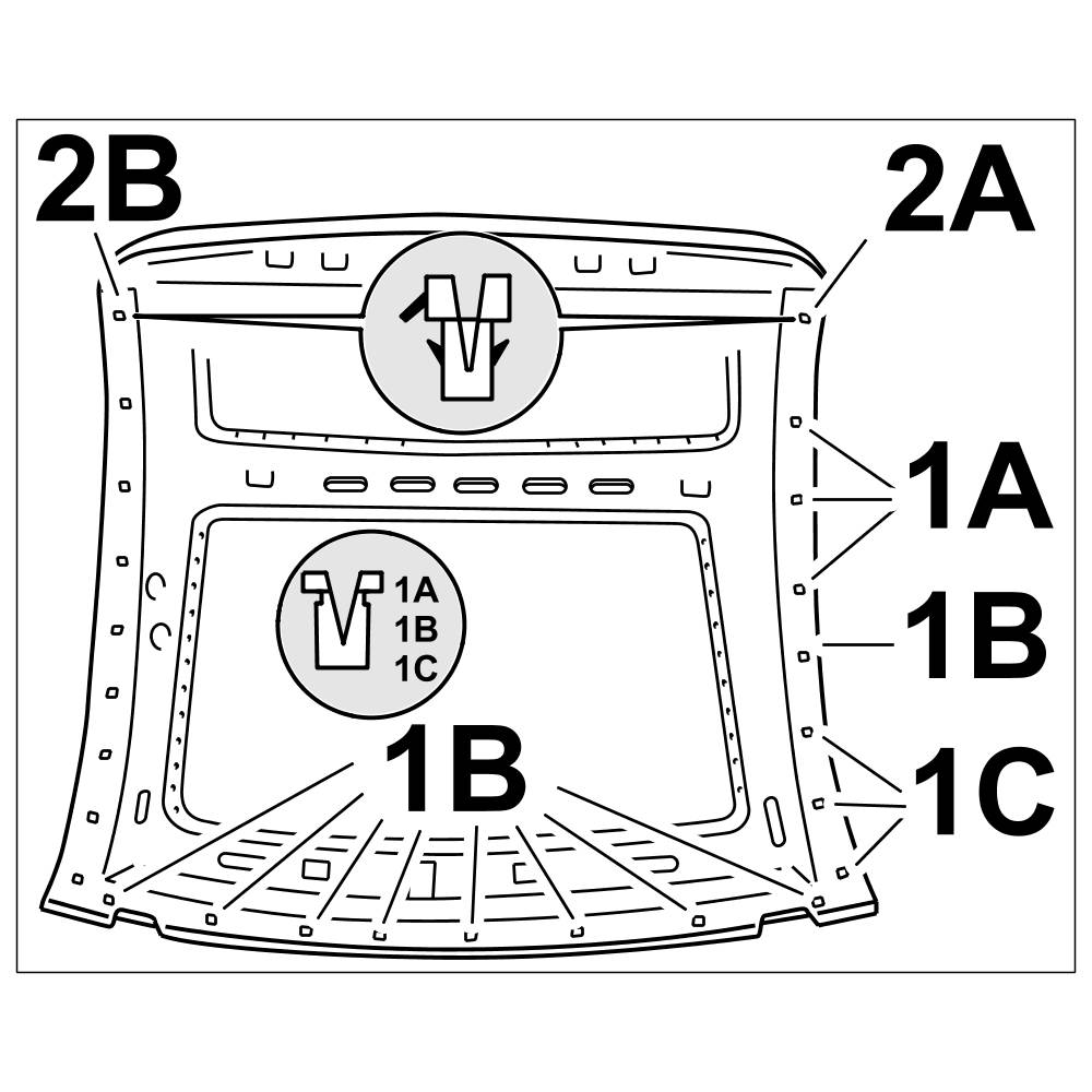 2.13. Press the expander nuts at the front -1B- into the hardtop body in the direction of travel.