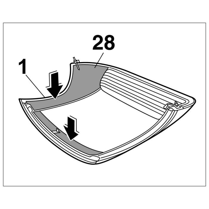 14.1. Clip lining -28- at the sides, front and rear into the hardtop body -1-.