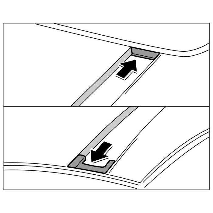 16.3. Position cover strip on hardtop body -1- and press into the roof strip clips.