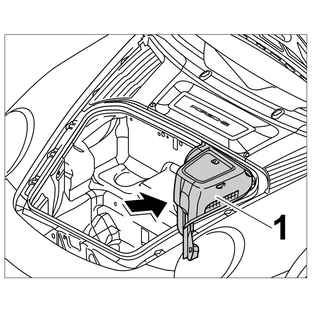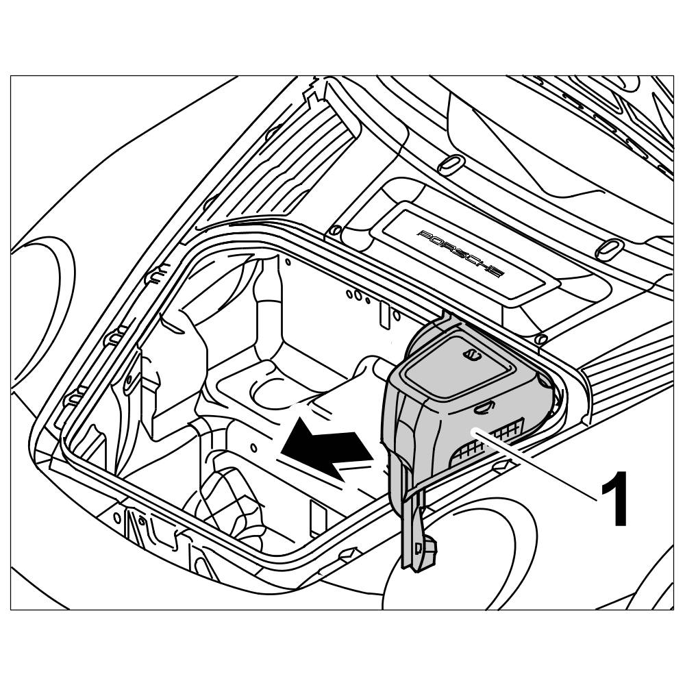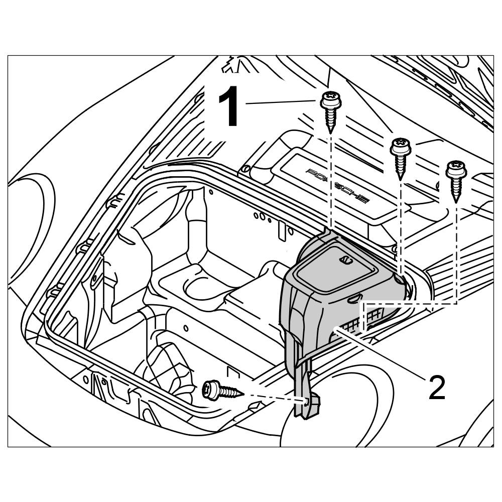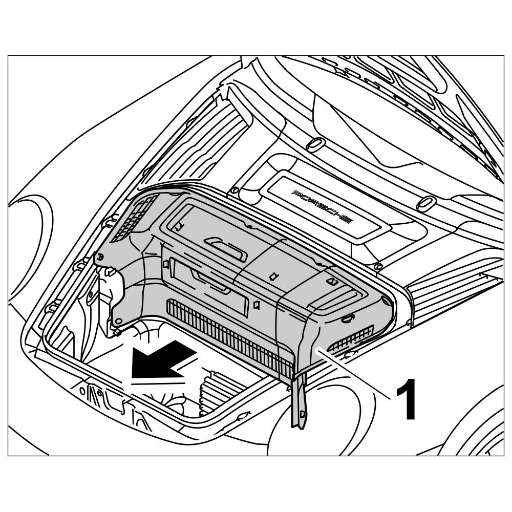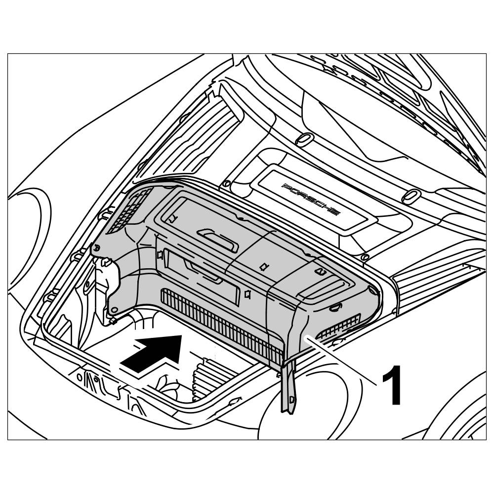 Install cover over brake master cylinder (luggage compartment cover) -1- , -> 703019 Removing and installing front luggage compartment cover 70301900 Removing and installing front luggage compartment cover.