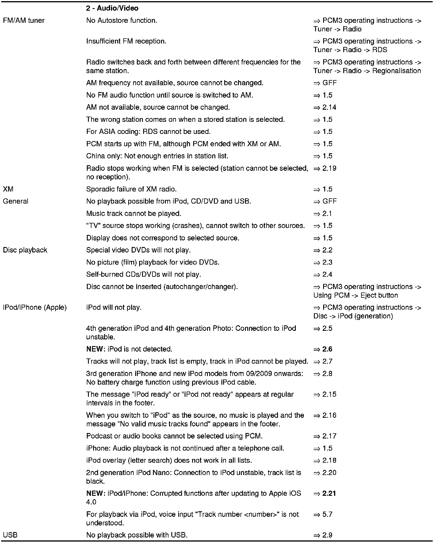 Furthermore, for information on remedial measures, also use the => 'Driver's Manual or PCM3 operating instructions'.