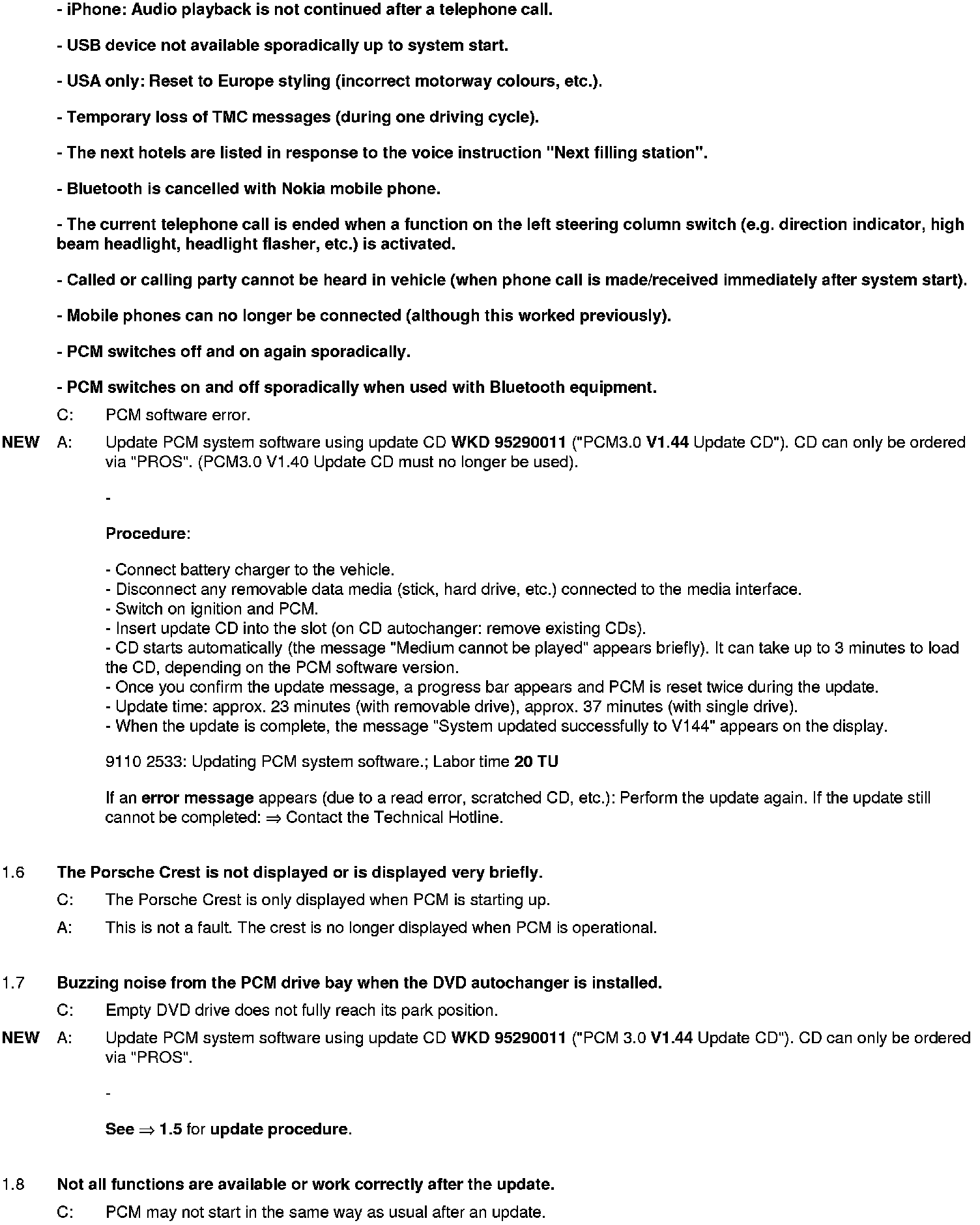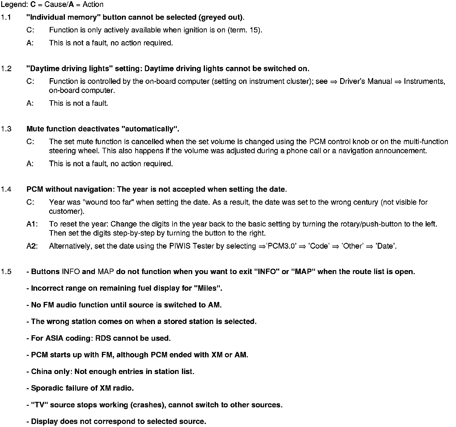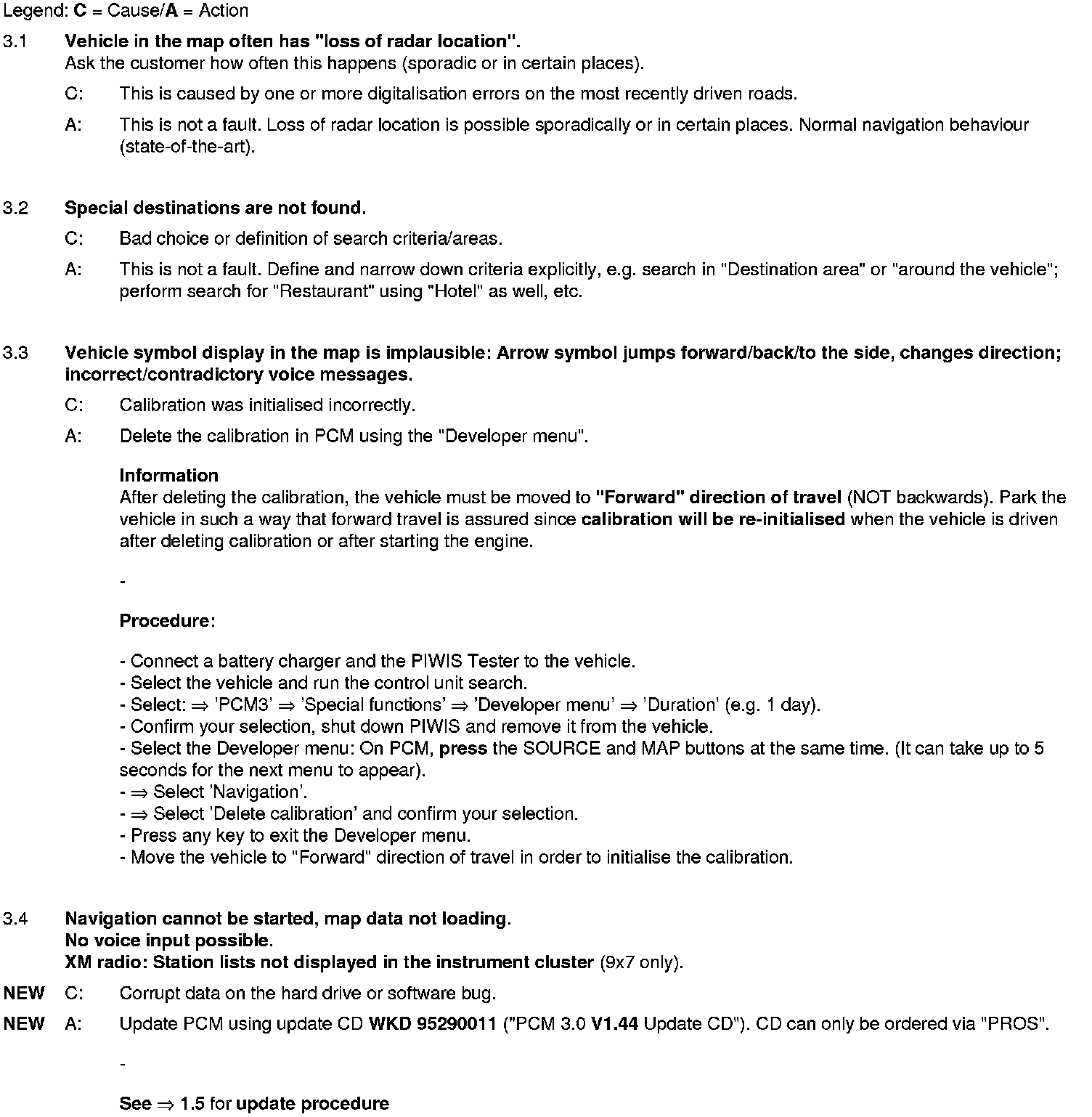 WM 911049 Eliminating symptoms in body interior: PCM3.0 integrated system: Complaints and repair instructions (SY01-08)