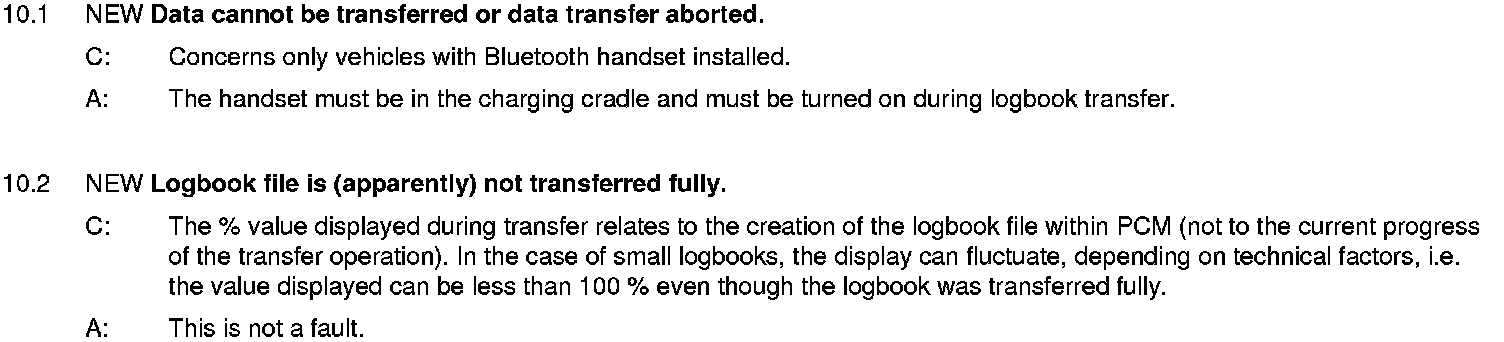 The list is sorted according to the system components and possible complaints. This is not a complete list of defects.