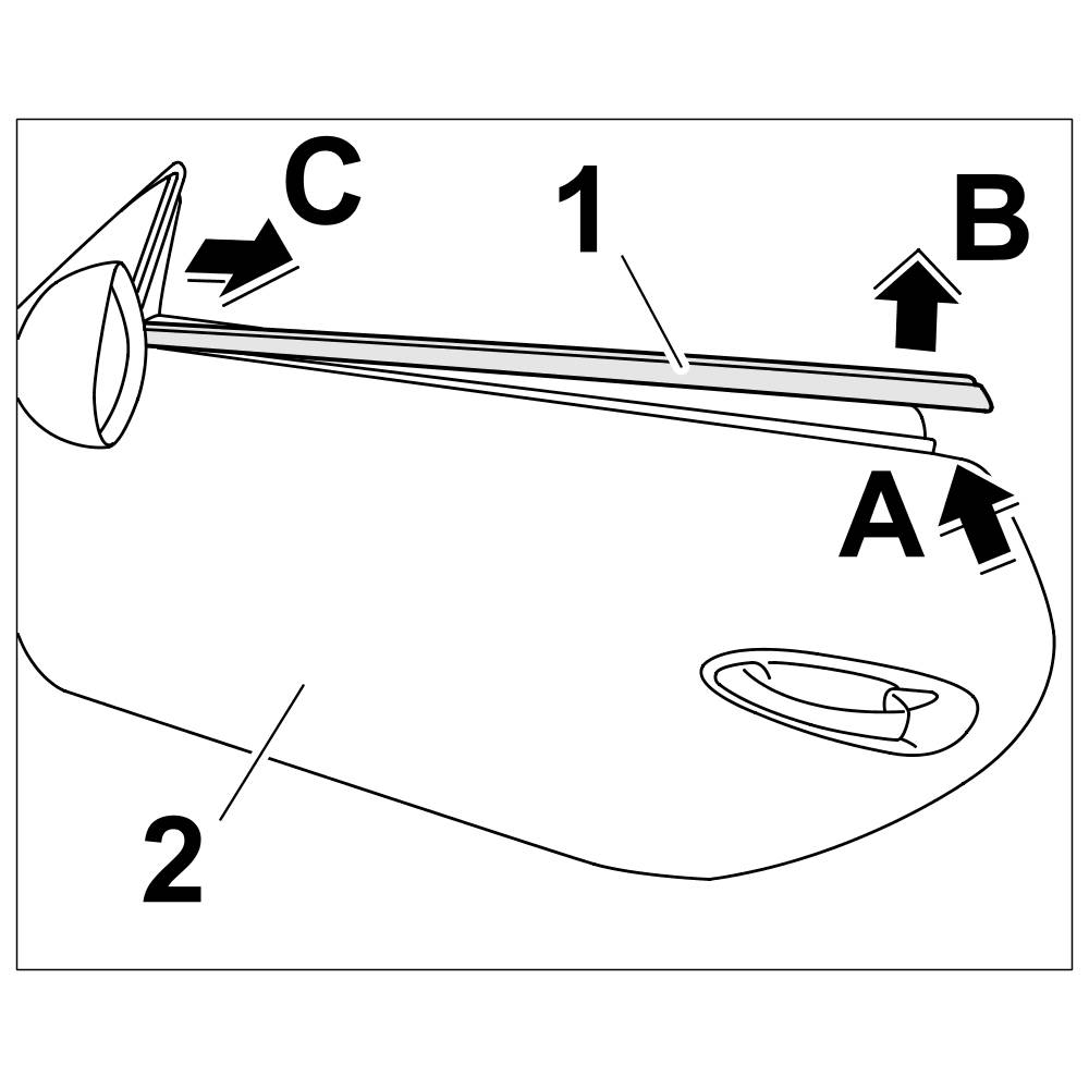 2. Pull front window bay seal -1- - beginning at the rear end -Arrow A- - off the sheetmetal door flange -2- in an upward direction -Arrow B-.