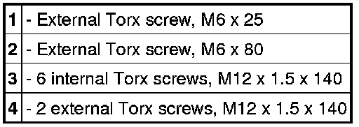 3.2. Loosen two external Torx screws (M12 x 140) -3- and six internal Torx screws (M12 x 140) -4- from the outside in and unscrew them.