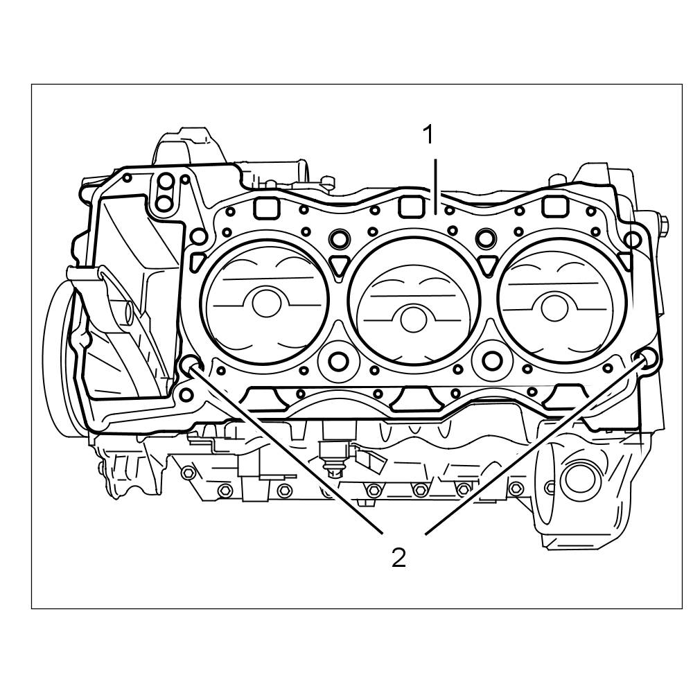 3.1. Unscrew four external Torx screws (E10) - three M6 x 25 screws -1- and one M6 x 80 screw -2- - on the inside of the cylinder head.