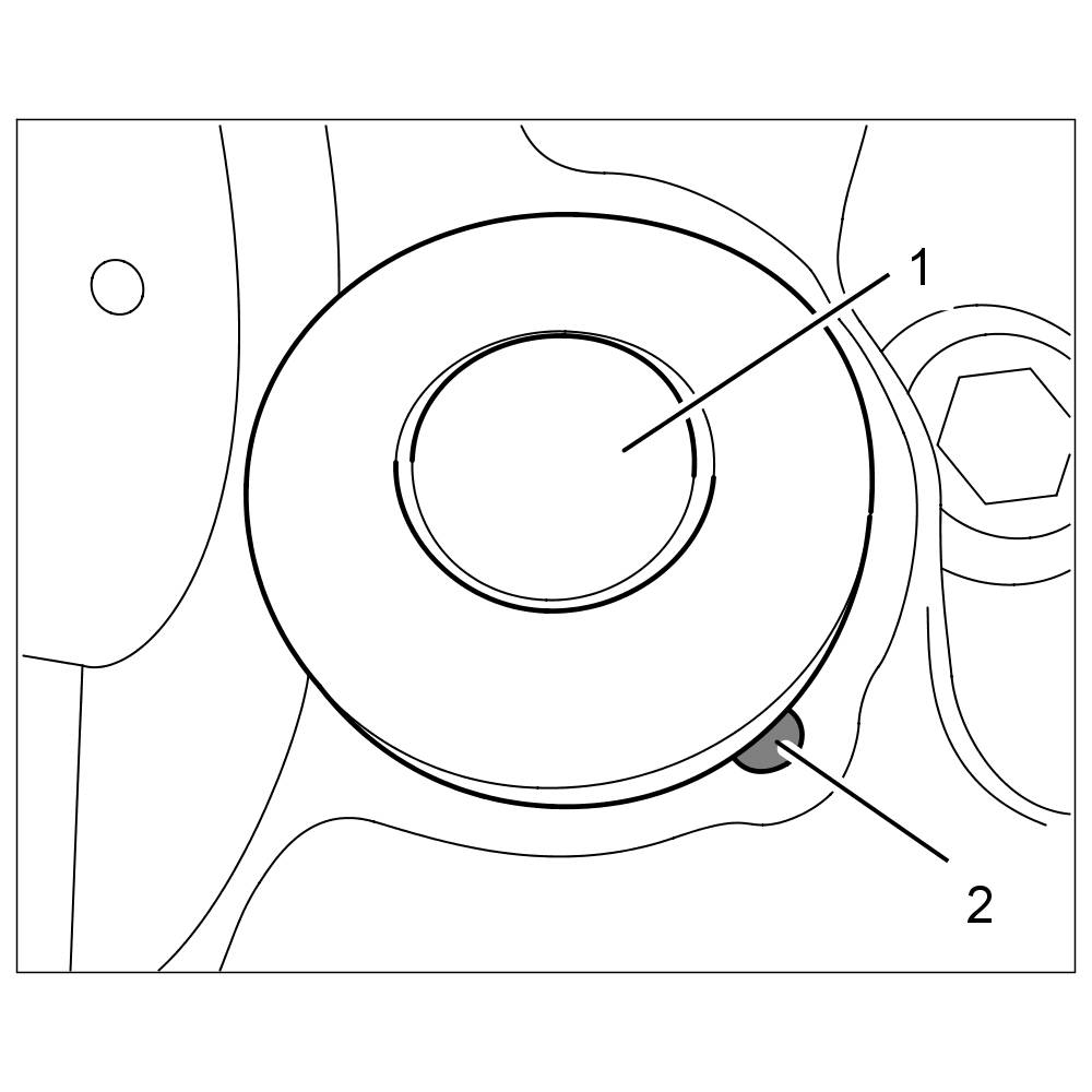 7.2. Installation position of bucket tappets -1- (outlet side) and dowel pins -2-.