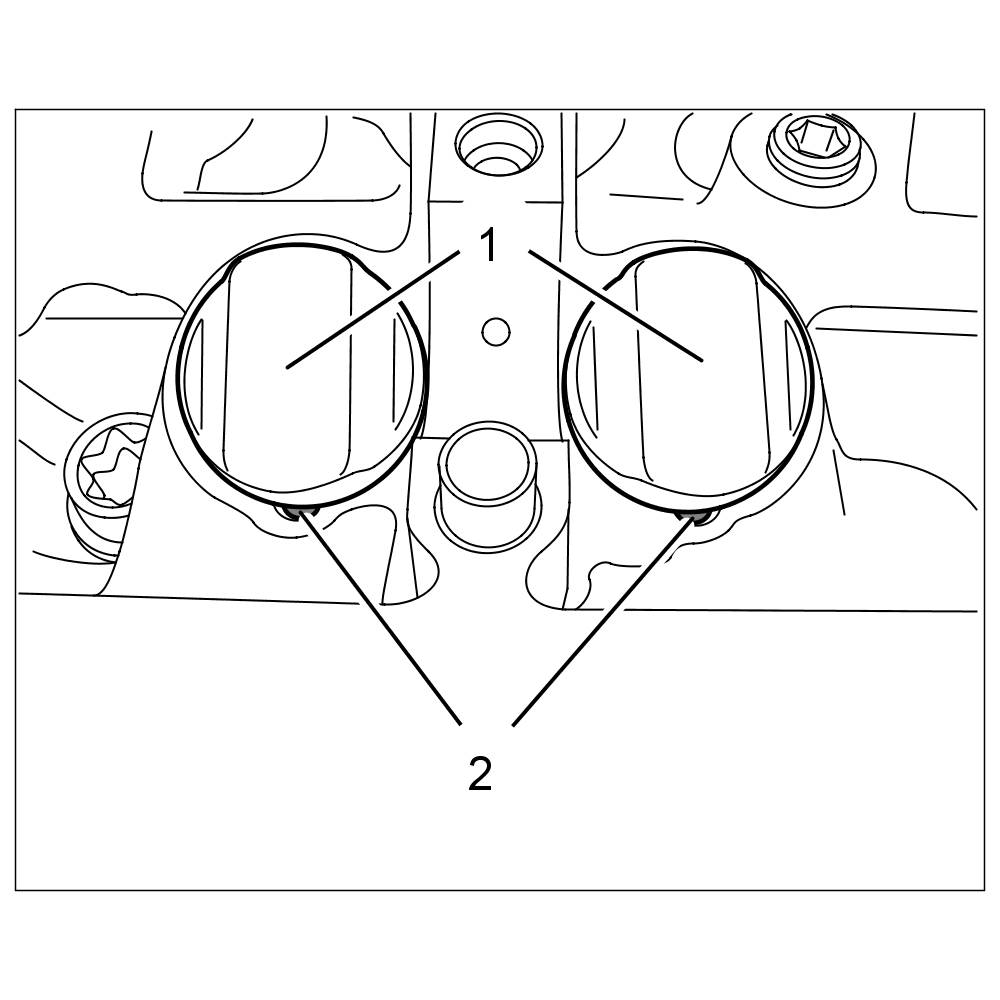 7.1. Installation position of switching tappets -1- (intake side) and dowel pin -2-.