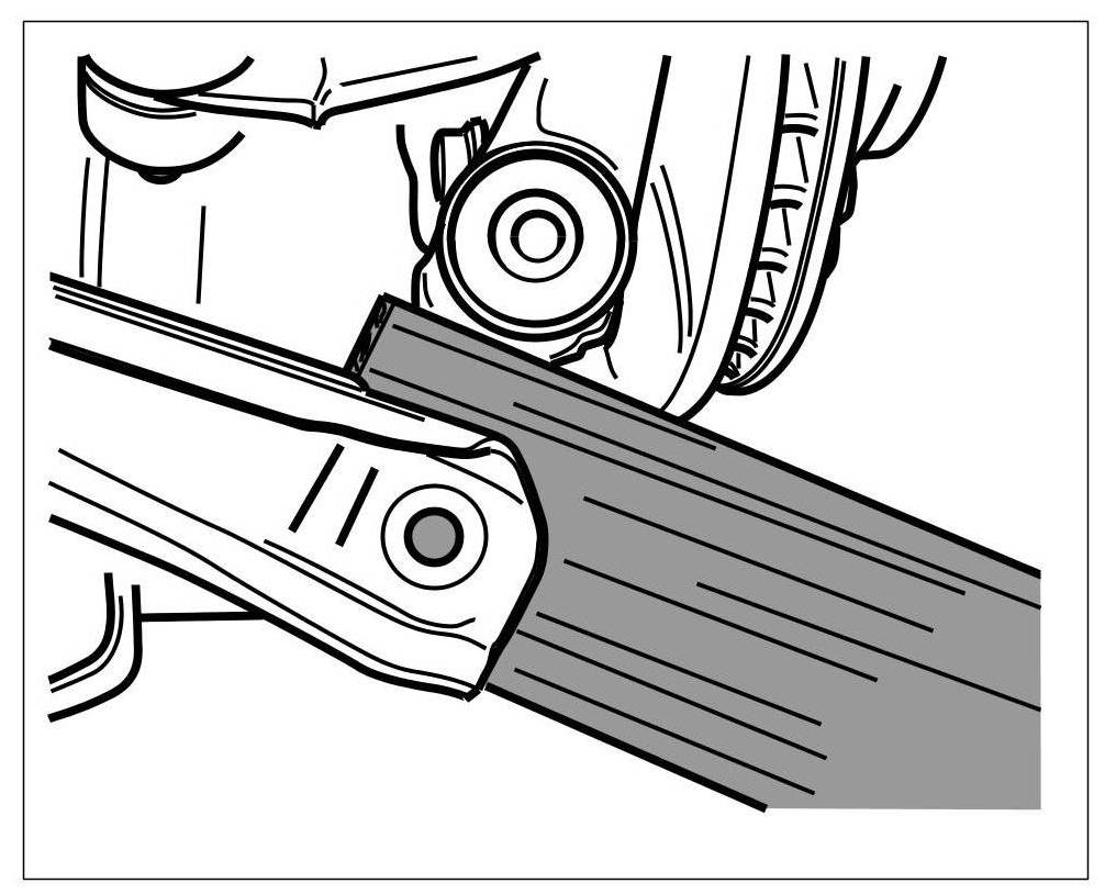 4. Press the lower trailing arm down further until a suitable spacer -see figure- (e.g. wooden block) can be inserted (makes removal easier).