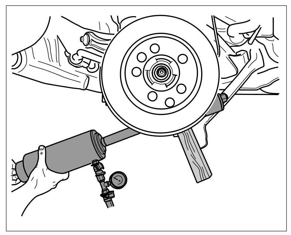 - Use an intermediate layer (hard rubber). Do not damage the brake cover plate.