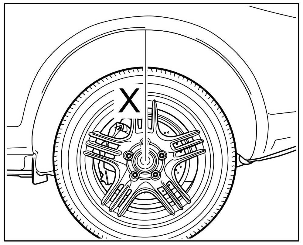 - The entire threaded parts of the axle must be tightened in vehicle position. Vehicle position means: vehicle standing on the wheels, or the wheel suspension is raised using a universal vehicle lift. Dimension -X- from lower edge of wing to middle of axle 506 mm +/-10 mm corresponds to vehicle position.