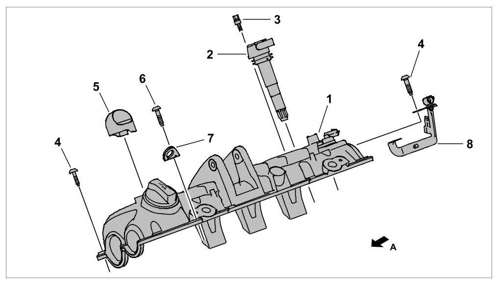 Bar ignition modules and valve cover, cylinder row 1 to 4