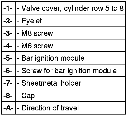 Bar ignition modules and valve cover, cylinder row 5 to 8
