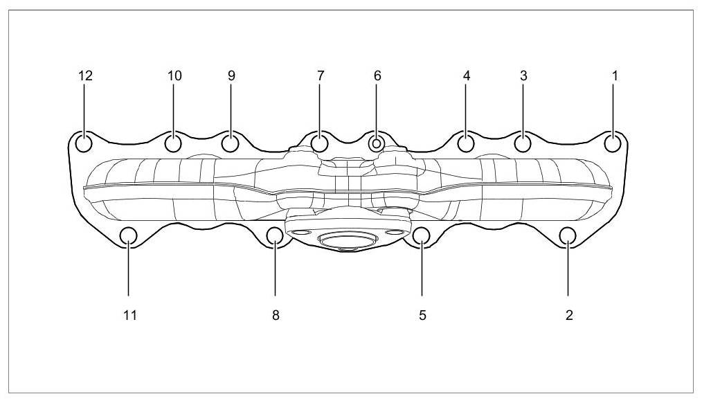 Tightening sequence for exhaust manifold on turbo engine M48/51, cylinders 1 to 4
