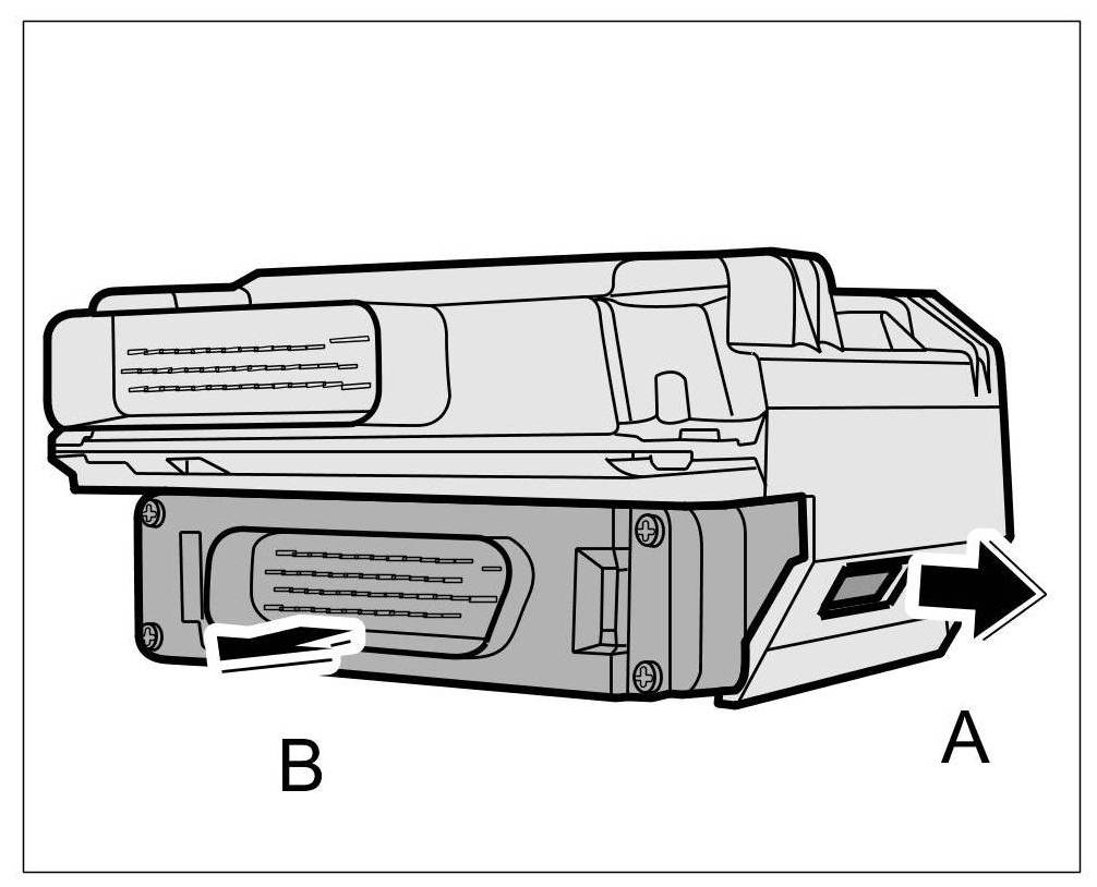 9. Release the locking lugs on both sides -A- and pull out the control unit -B-.
